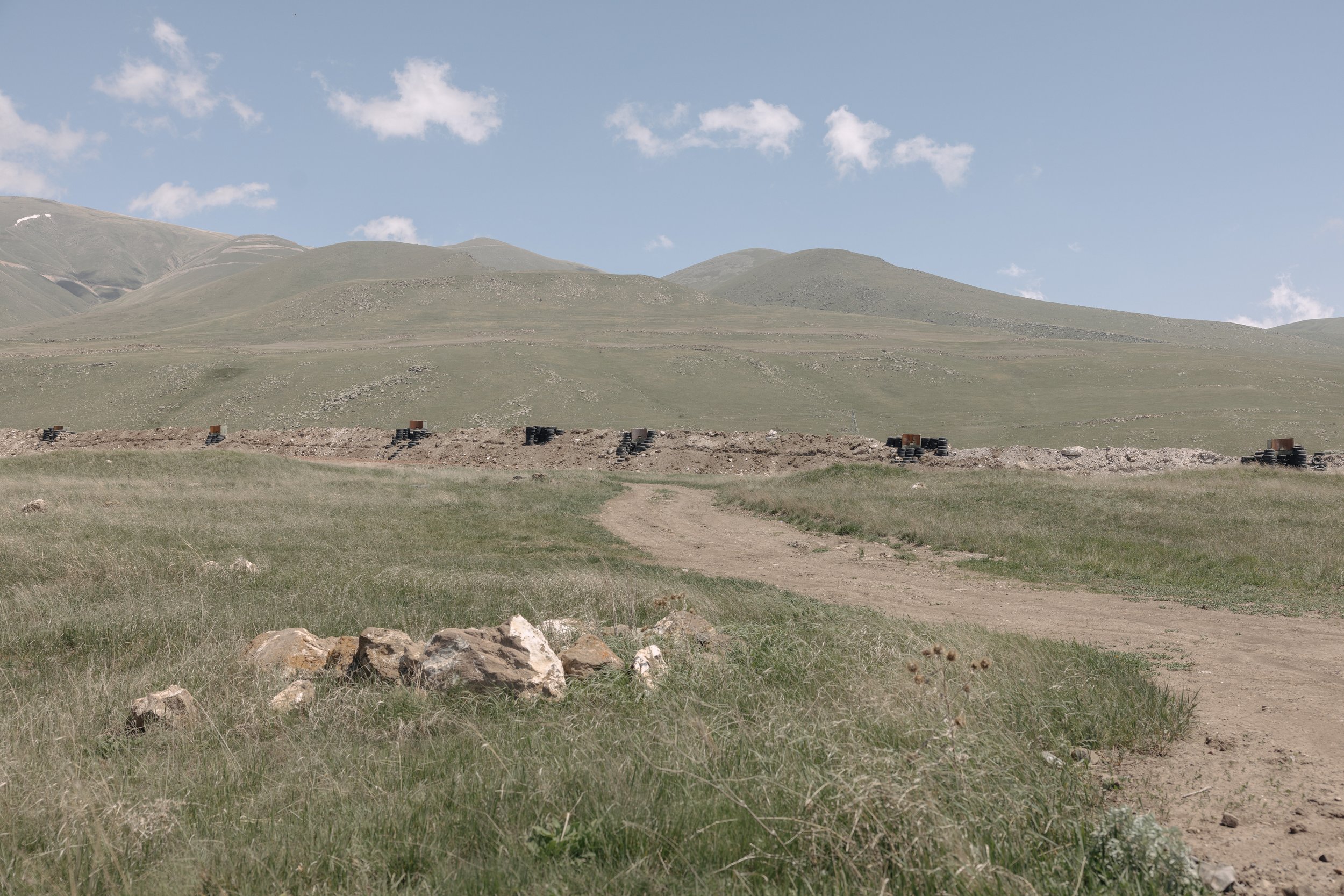 Military trenches cut through the earth just outside Yeraskh on 20 May 2025, a frontline village in Armenia’s Ararat Province, near the border with Azerbaijan’s Nakhchivan exclave. The area has seen repeated ceasefire violations and exchange of fire in recent years, making Yeraskh one of the most volatile points along the Armenia-Azerbaijan border. Located just 70 kilometers from the capital, Yerevan, Yeraskh holds strategic significance, especially amid ongoing tensions over regional transport routes and border demarcation.