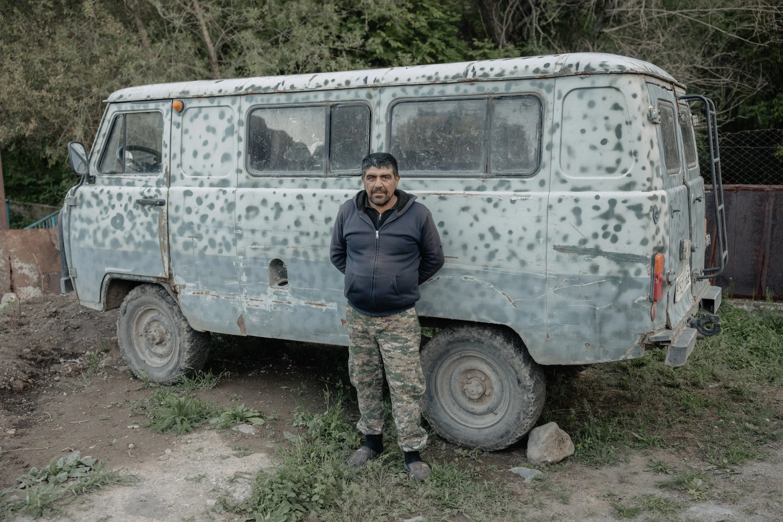David Babayan, a father of seven, worked during the 2020 Nagorno-Karabakh war retrieving the bodies of fallen soldiers from battlefields in his UAZ‑452 van. He recalls the horrors of corpses lying in the fields for weeks, often torn apart by artillery fire, and the trauma of handling remains for identification. The conflict, which lasted 44 days, left deep scars across Nagorno-Karabakh and surrounding Armenian border regions, displacing thousands and leaving villages exposed to sudden violence.