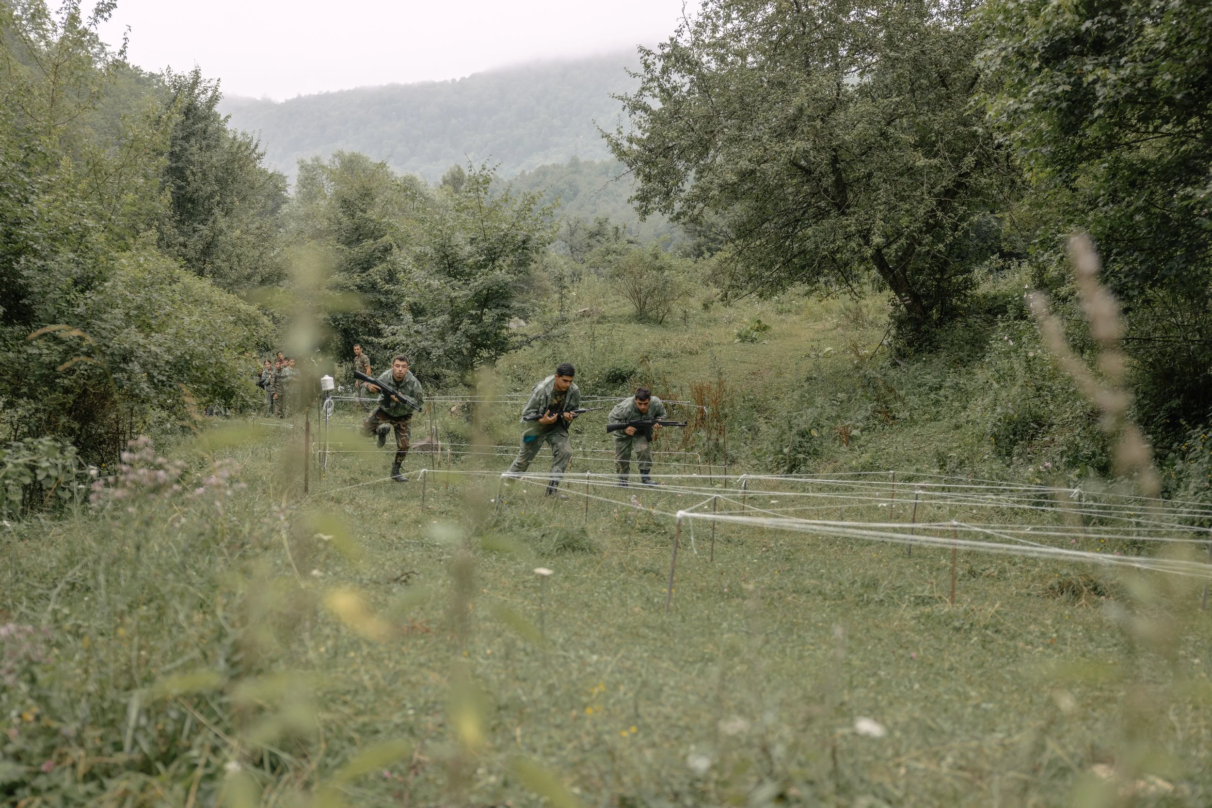 Armenian civilians take part in military defense training in Dilijan, Armenia Tavush Region on 30 July 2023 as part of broader efforts to increase public preparedness amid continuing tensions along the Armenia–Azerbaijan border. These training activities took place against a backdrop of repeated ceasefire violations and cross-border incidents throughout 2023, including small arms fire directed at Armenian positions in nearby provinces.