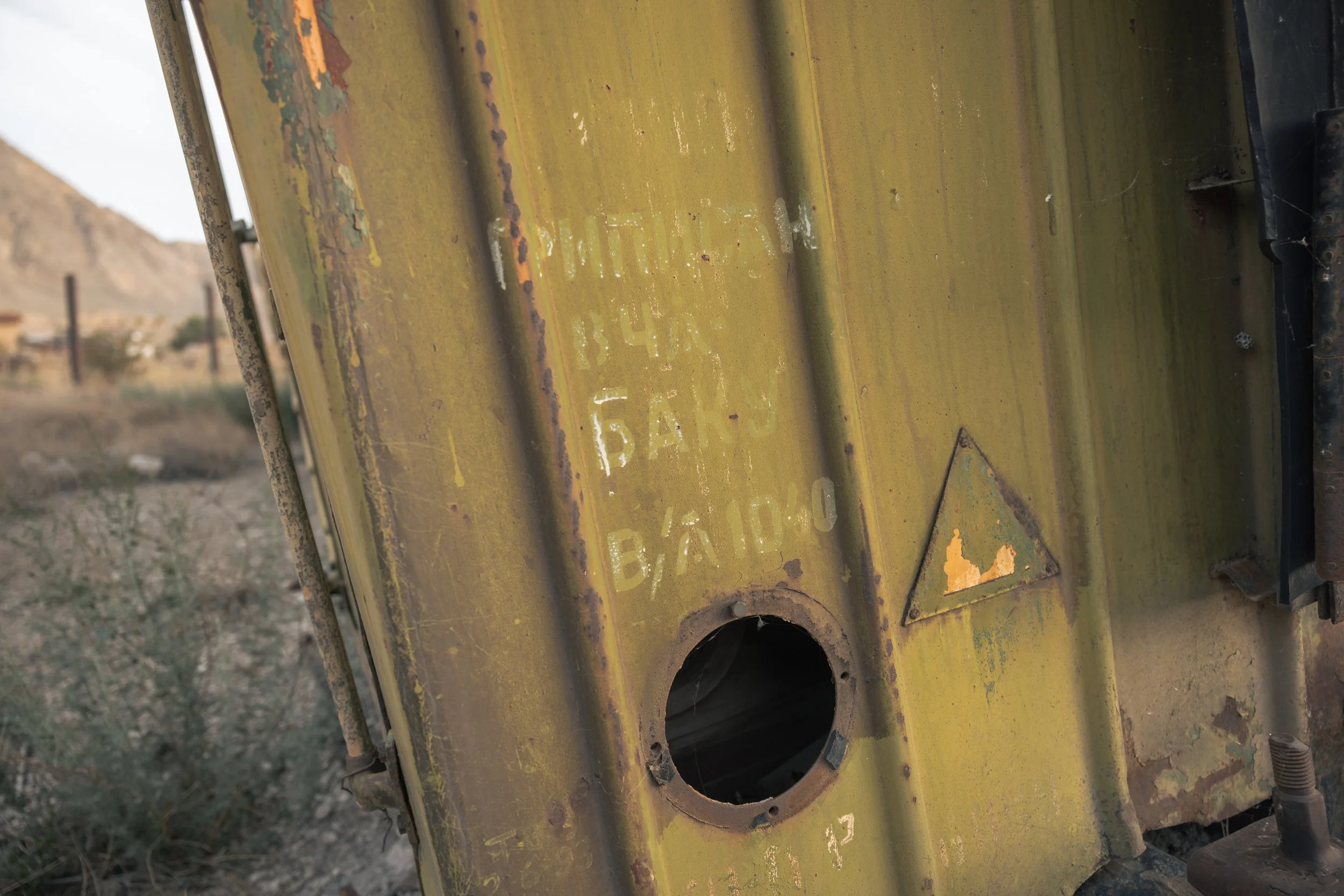 Rusting railway cars sit abandoned near Agarak, on Armenia’s southern border with Iran, on May 18, 2025. The cars, marked with faint Russian stenciling reading “Baku,” were once part of the Meghri railway line connecting southern Armenia to Azerbaijan and Iran. The abandoned tracks now contrast with efforts to reopen regional transport through the U.S.-brokered Trump Peace Corridor (TRIPP), a project designed to link mainland Azerbaijan with its Nakhchivan exclave. TRIPP includes road, rail, oil, gas, and fiber-optic infrastructure, operating under Armenian law to respect the country’s sovereignty, and aims to foster economic cooperation as part of broader attempts to resolve tensions between Armenia and Azerbaijan.
