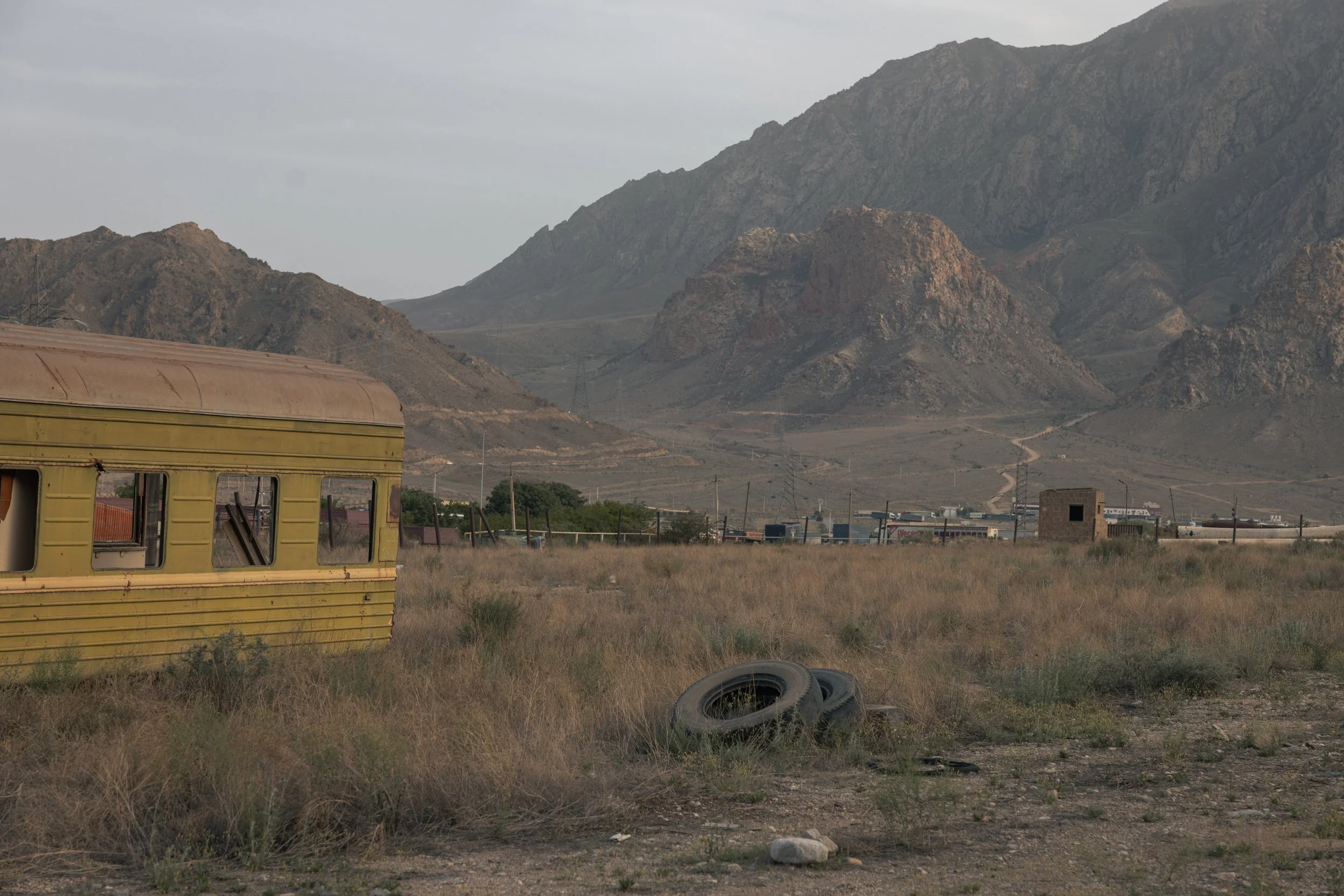 Near the border town of Agarak, southern Armenia, abandoned railway cars from the former Meghri line sit rusting on May 18, 2025. Once part of a route connecting southern Armenia with Azerbaijan and Iran, the railway was decommissioned decades ago, leaving behind skeletal infrastructure. In the distance a road stretches toward the area proposed for the Zangezur Corridor, a potential new transit link that has stirred debate over its implications for regional transport and geopolitics. The juxtaposition of derelict railcars and a road heading toward a contested future captures the layered history of the region from Soviet‑era connectivity, through years of closure and isolation, to renewed tensions and hopes around shifting transportation routes.